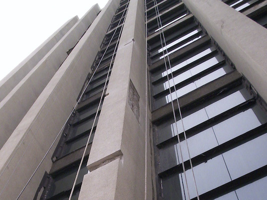 To restore the structural pillars, it was necessary to work on the top floors, for which lifting equipment was needed, as well as working platforms that were specially designed at Ebital.