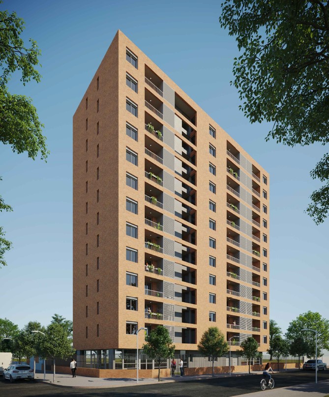 Los restantes 12 pisos se constituyen destinados exclusivamente para viviendas, integrados cada uno por 7 viviendas por pisos con 3 tipologías diferenciadas.
